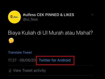 Akun @ui_fess menggunakan trigger -uwiw sebagai kata pemicu yang mengolah postingan menjadi tweet secara otomatis